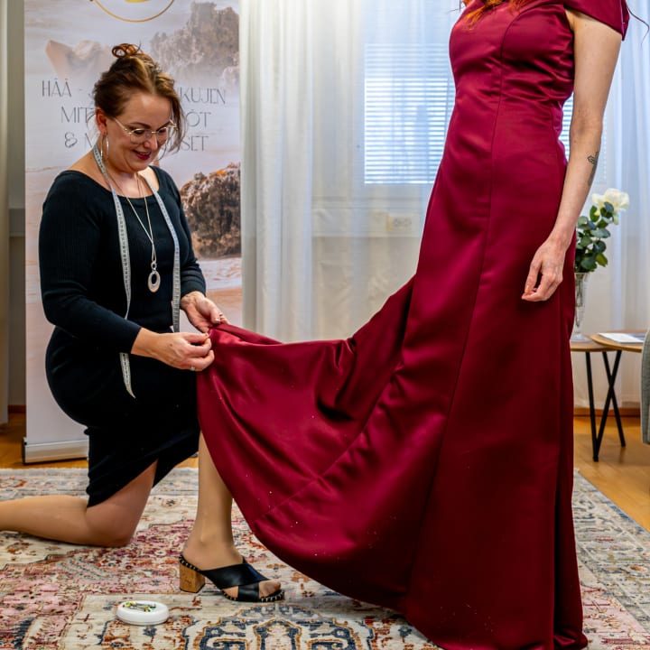 Me tahdomme, että saat juhlia sinulle täydellisesti viimeistellyssä ja istuvassa juhlapuvussa. Huolehdimme pukusi muokkauksista, jotta sinä saat loistaa.